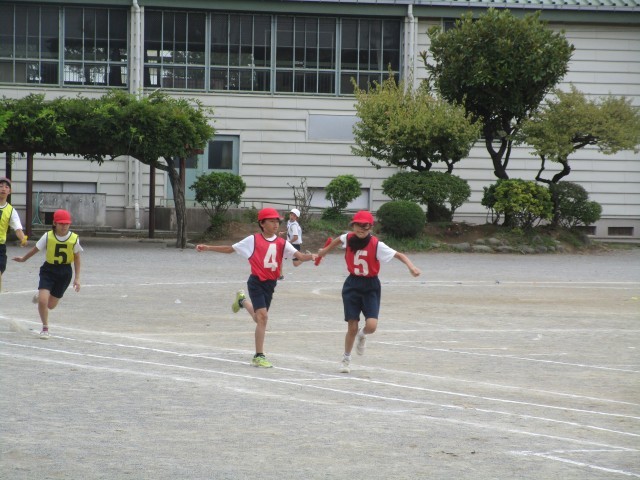 互いに応援しあいながら、一生懸命練習していました。「もっと手をあげよう」「リード早くしていいよ」などアドバイスをしあいながら、どんどんバトンパスも上達してきていますね。当日の迫力あるリレーが楽しみです。