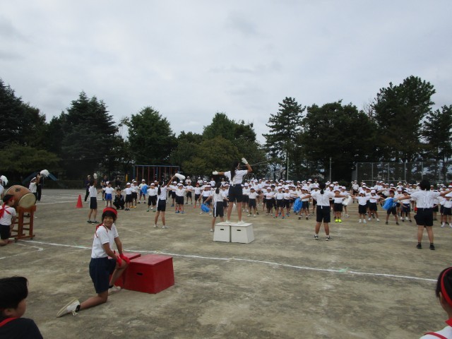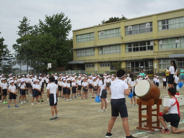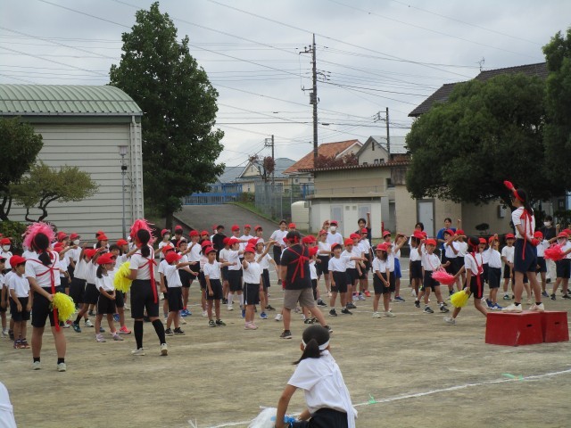 応援合戦の練習では、それぞれのタイミングを覚えたり、元気な声で応援歌を歌ったり、それぞれの組を盛り上げようとする応援団のおかげで、校庭に元気な声が響き渡り、子供たちの気持ちを高めていました。