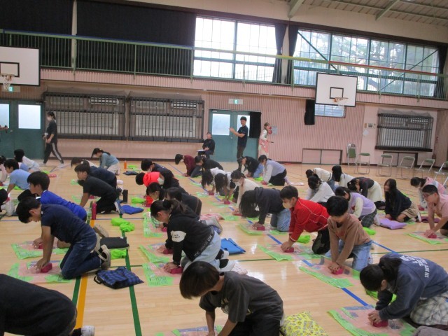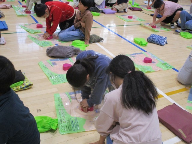 10月27日(月)5年生は体育館にて、日本AED財団東京PUSH所属から看護師の方が2名来てくださり、「心肺蘇生法」について教えていただきました。心臓マッサージ・AEDの使い方を「あっぱくんライト」を使って一人一人実際に体験してみると、とても体力がいることがわかりました。「AEDは学校のどこにありますか」「胸骨は身体のどこにあるかな」「意識があるかどうかはどうやって確かめますか」など一つ一つ分かりやすく教えていただきました。いざという時に何か自分にできることを一つでも見つけて、勇気ある行動につなげられるといいですね。