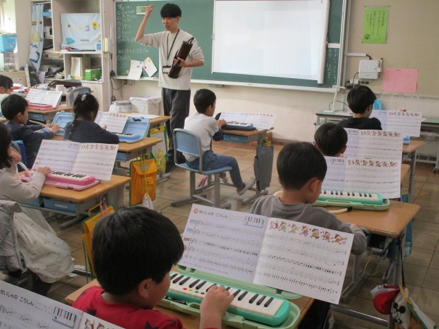 10月29日(水)2年生で音楽の授業が行われました。ピアニカで合奏「聖者の行進」です。指の使い方・リズム・音符の読み方などを習いました。2人組で聞きあいアドバイスをしながら、互いに学び合いどんどん上手になってきまています。一ヶ月後には音楽祭があります。練習を積み重ねて素敵な合奏にしましょうね。