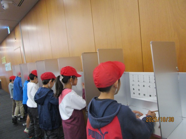 市役所では、市役所のクイズや「動物村」の選挙体験、屋上見学、議場見学・体験を行いました。