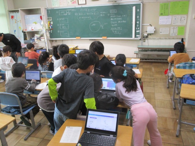 これまでに来校したICT支援員さんに、動画の撮り方やCanvaというソフトを使って動画の編集の仕方を教わったことを生かして編集をしていました。