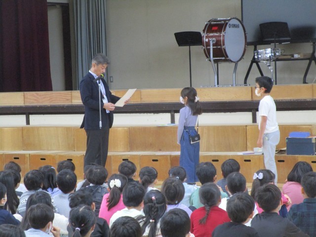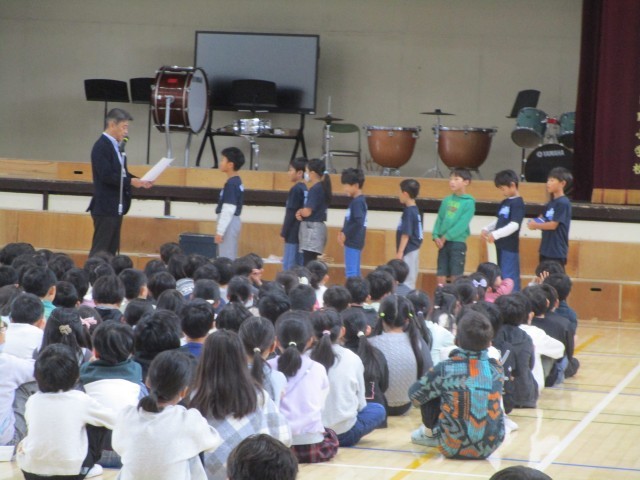 11月18日(火)全校朝礼がありました。校長先生からは音と身体の関係性から前向きな気持ちの大切さを教えていただきました。音楽会も今月末に行われます。「できる!」「頑張ろう!」という気持ちを大切に取り組んでいきましょう。