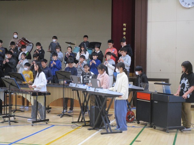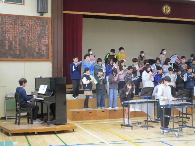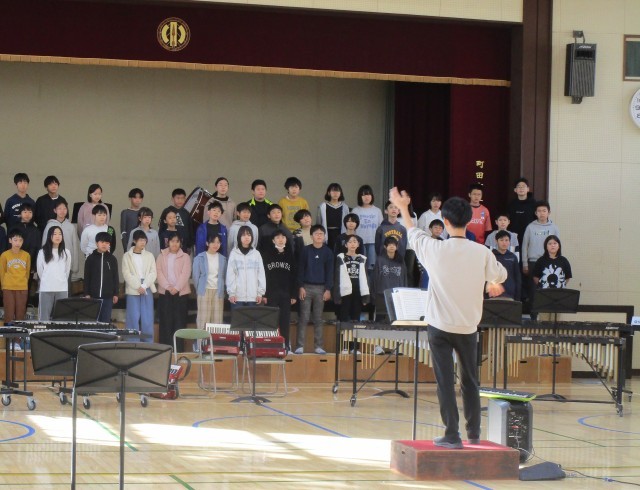 11月19日(水)6年生が体育館で音楽会の練習を行いました。二部合唱は「風の道しるべ」です。先生の指示やアドバイスの間は「さすが6年生!」です。私語なくみんなが緊張感をもって話を聞き真剣です。合奏は「Guts!」です。それぞれの楽器のリズムや強弱を確認しながら音を合わせていきます。練習を重ねるたびに楽器の奏でる音が一つの曲に仕上がってきました。これからもっと練習を重ねて素敵な合唱・合奏にしていきましょう。