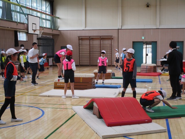 「できたよ!」「すごい!」「もっとやってみたい!」「大丈夫できるよ!」と互いに喜んだり励ましたりしながら、生き生きと一生懸命に学習し、台上前転がどんどん上達していました。