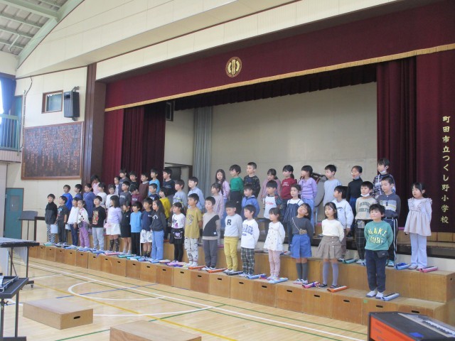 11月20日(木)体育館練習が行われました。斉唱は「夢をかなえてドラえもん」です。1年生の伸びやかで元気な歌声が体育館いっぱいに響いていました。「とっても良かったよ!」と先生からの言葉に、みんなとっても嬉しそうです。