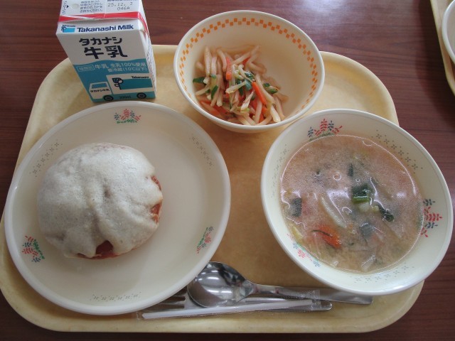 28(金)メロンパン、ポテト入りナムル、肉団子の味噌スープ、牛乳