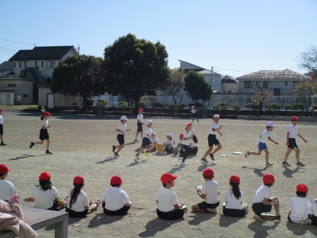 校庭では「一年生頑張って~!」と5年生の大きな声援が響いていました。5分間で何週走れるかに挑戦です。自分との戦いでもあります。自分のペースで無理のない速さで走ります。苦しくなった時には、声援・応援が大きな力になりますね。