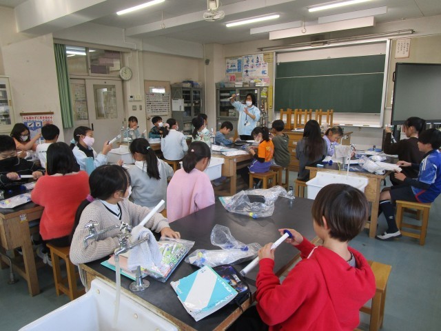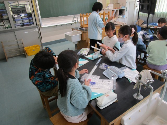 理科の「水と空気」の学習で、実験キットを組み立てて実験しました。