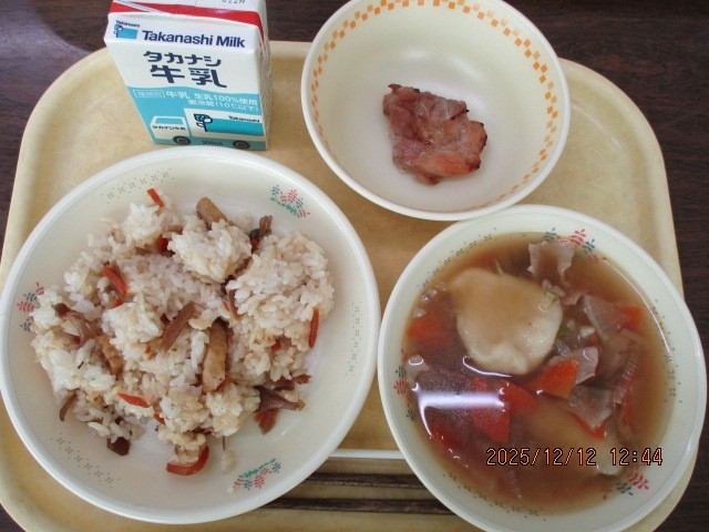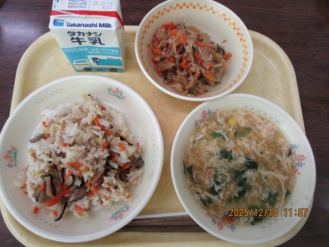 10(水)中華風おこわ、中華風コーンスープ、チャプチェ、牛乳