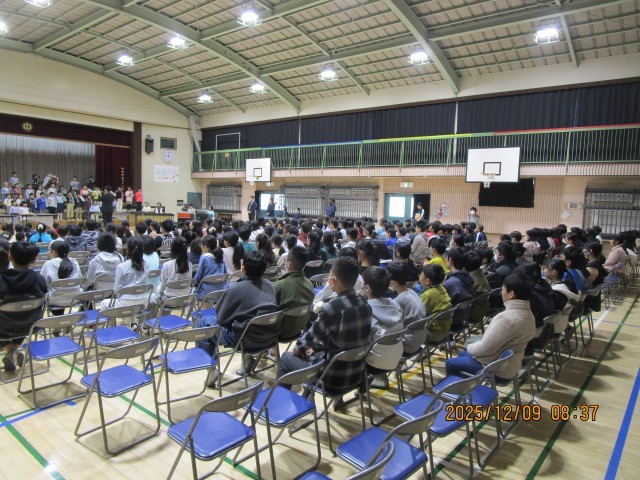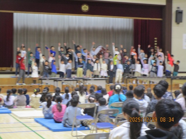 12月9日(火)朝の時間と1時間目の少しを使って、延期されてきた1,2年生の音楽会の児童鑑賞を行いました。