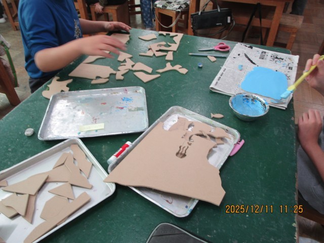 真剣に糸のこに向き合い、切り終わるとパズルのようにして楽しんだり、思い思いに彩色を楽しんでいました。