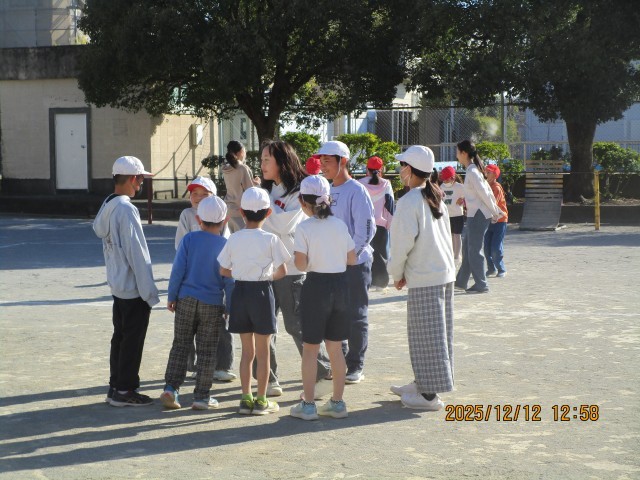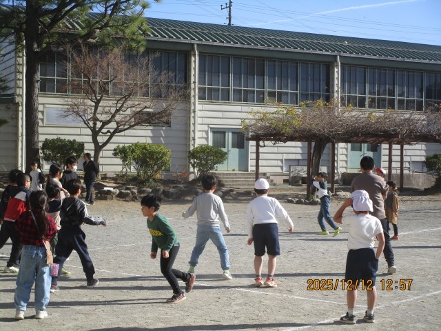 上級生が中心になって遊びを企画します。1年生~6年生のグループに分かれて教室や校庭で行いました。教室では椅子とりゲームやウインクキラーゲーム・・・ルール説明があり輪になってみんなで楽しんでいました。校庭ではドッジボールやこおり鬼・ふえ鬼など・・・走り回ってみんな元気に楽しんでいました。さすが上級生です!優しく声をかけたり気遣いが感じられる場面もあり、下級生も安心して活動することができていました。