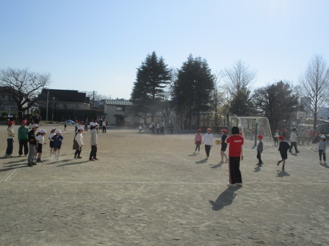 校庭では、バナナオニ、ドロケイ、ドッジボール、だるまさんが転んだなど元気に走り回っていました!