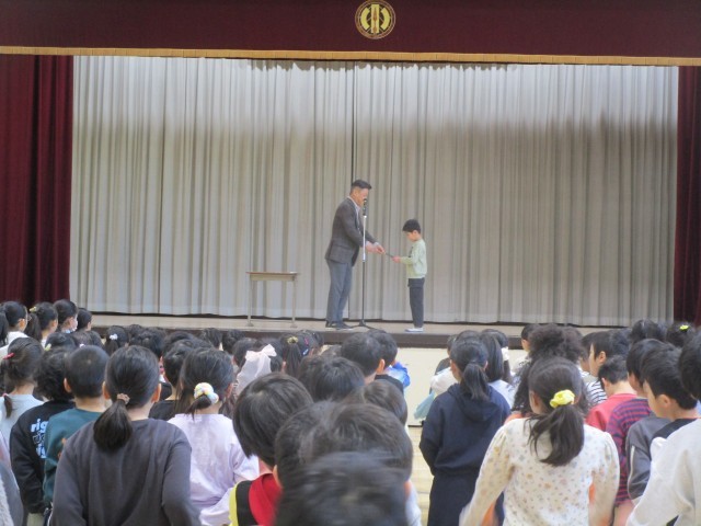 表彰では、空手で優勝をしメダルと賞状を渡しました。努力を継続しての結果ですね。素晴らしいです!おめでとうございます。