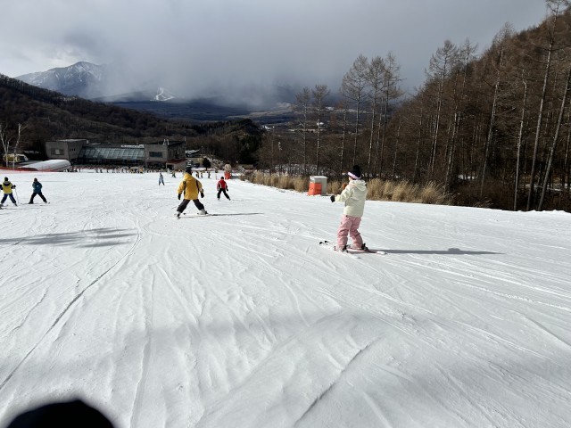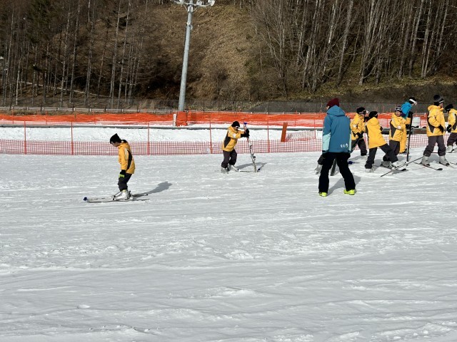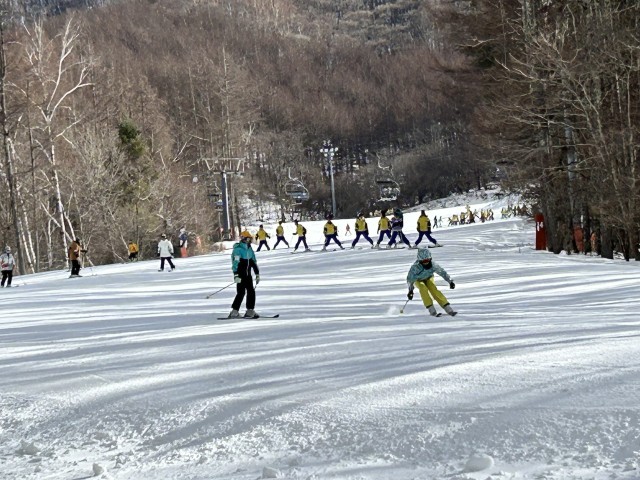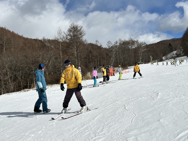 また、初級者コースでは、インストラクターの方の後をきれいに並んで滑ったり、自由に左右に弧を描きながら滑ったりして楽しんでいました。