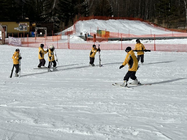 ストックなしで滑ったり、「ハの字」の形を保持するために、板の先に先端が開かないようにするための道具を使って滑ったりする中で、さらにコツをつかむ姿が見られました。