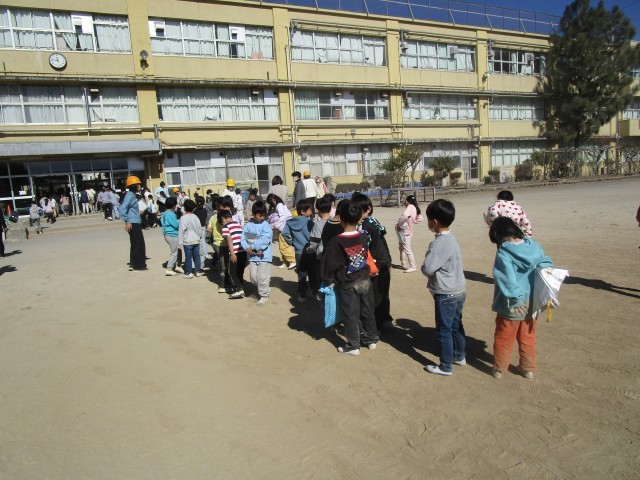 訓練が終わってから教室に戻る際に、地面に座っていたためズボンなどに砂ぼこりがついていても、「人が多いところでは、より埃っぽくなるのではたかない」という先生たちの声掛けに応じて、学級ごとに全体から離れたところで、それぞれ距離をとってはたくなど、訓練に対する姿勢も併せて、立派なものでした。