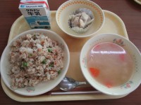 献立:トマト塩ラーメン、マーラーカオ、いちご、牛乳