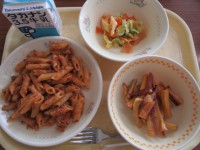 いちごは、もともと5月から6月が旬の果物でしたが、ハウス栽培によって、12月ごろから出回るようになりました。いちごには、体の調子を整えて風を予防するビタミンCがたくさん含まれています。残りの3学期も元気に過ごせるように噛んで食べましょう。