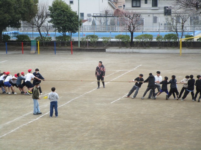 さあ~!いざ始まってみると・・・6年生のパワーがすごい!流石です!力が強い!チームワークがすごい!やっぱり6年生はすごい!と感じる戦いでした。5年生は綱を伝わって6年生のパワーと団結力を感じ「次は自分たちだ!」という想いが強くなったことと思います。とても清々しく温かい交流の時間になりました。