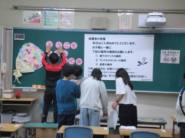 受付、式場、1年生教室、教科書など手分けして、新一年生の入学の準備をしました。