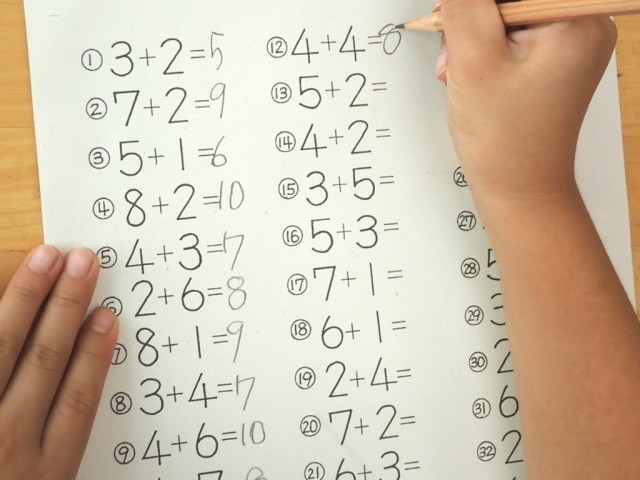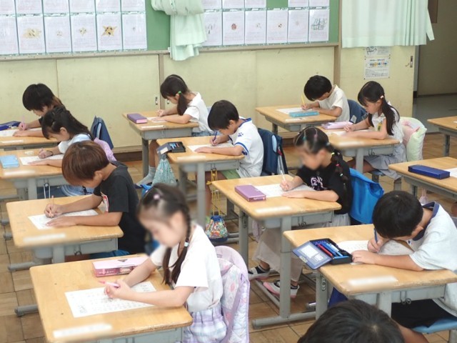 昨日から、算数の授業のはじめに、計算プリントのタイムトライアルを始めました。3分以内で全問クリアを目指します。