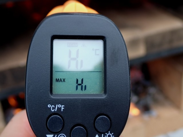木をいじりすぎたり入れすぎたり、色々ありましたが、いい具合に熱くなり、一時的には、500度まで測れる温度計がHi(計測不能)レベルに!