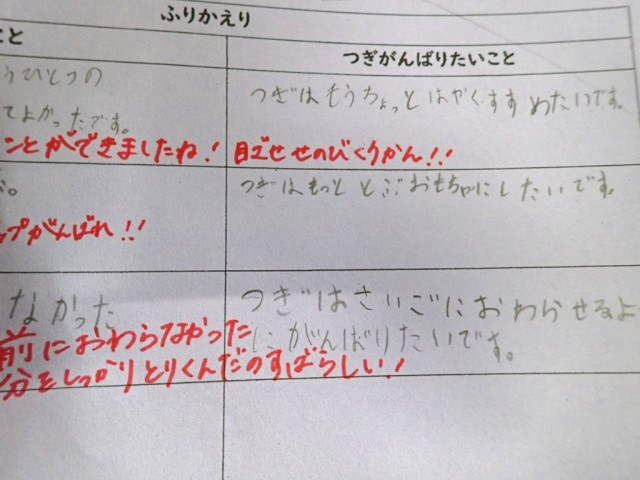 振り返りや、「おもちゃこうぼう」のお掃除も頑張っていました。