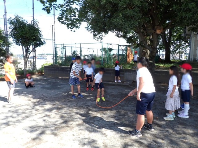 5.3段跳びが流行っているらしく、友達同士でどこまで跳べるか挑戦している3年生