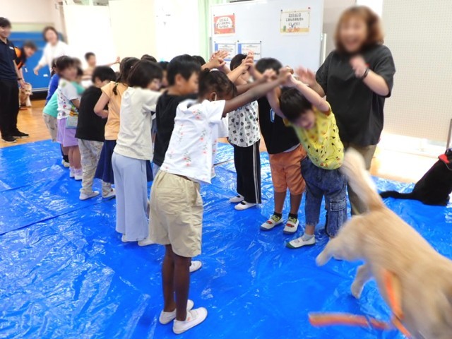 最後はみんなでアーチを作り、ワンちゃんが通ってくれました。大きなワンちゃんは速すぎて写真を撮れず…