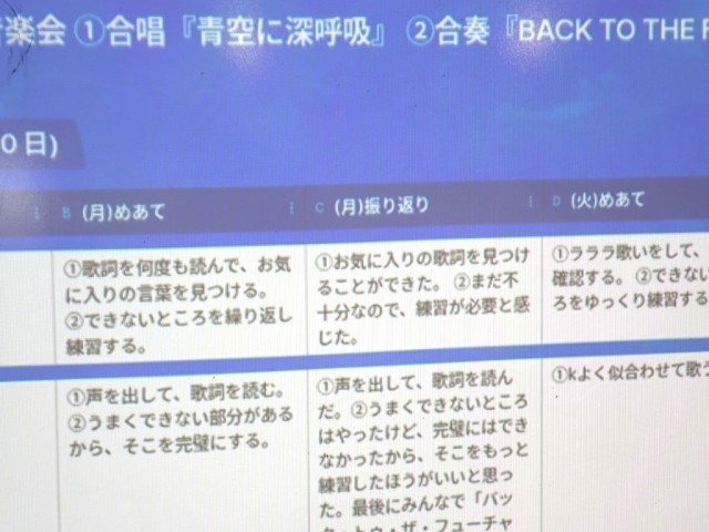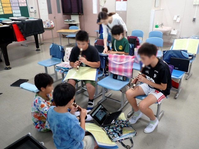 初めに合唱の練習をした後は、連合音楽会で演奏する曲の楽器を個人で練習しました。