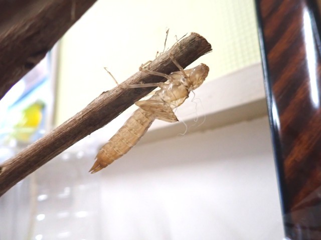 それが今朝、ついに羽化して、立派なギンヤンマらしきトンボに!