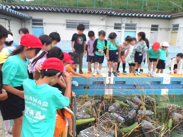 9月初旬に、飼育委員さんがトンボのために作ってくれた「抽水植物フロート」の近くに放せば、他のヤンマたちと合流できるかと考えたのでした。https://machida.schoolweb.ne.jp/1310185/weblog/130206520?tm=20250908201940