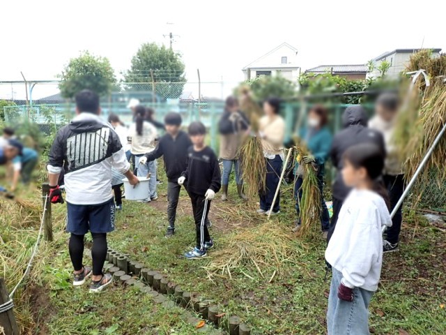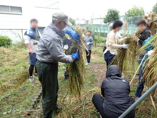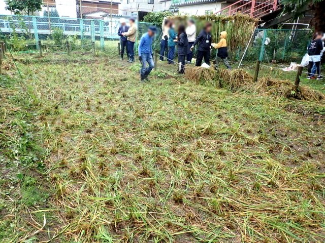 刈り取った稲は、乾かして、しめ縄リースにする予定です。