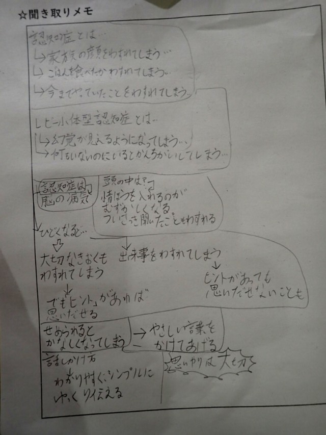 寸劇を見せていただいたり、認知症の方とどのように接するかロールプレイをしたりしました。