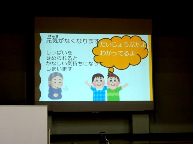 高齢者支援センターの方々にお越しいただき、認知症について教えていただきました。