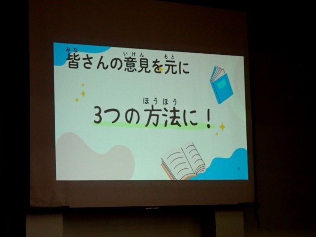 「図書室を水曜日にも使えるようにしたい!」という議題について、先週は、Meetで各クラスの意見を共有してきました。