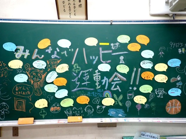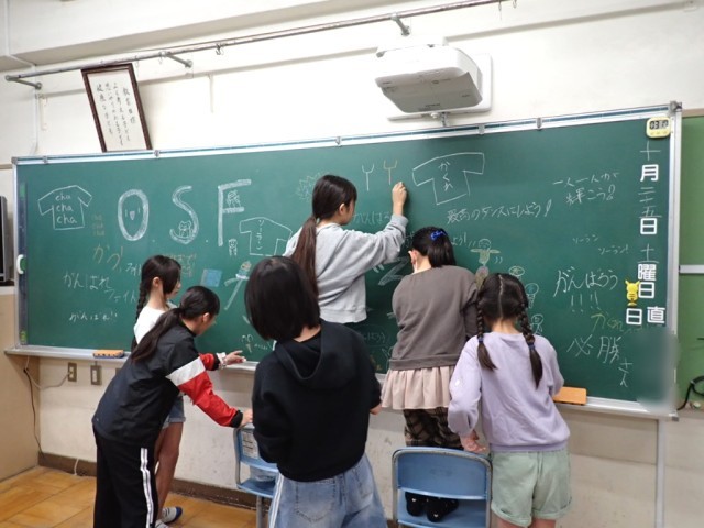 今日は、黒板に気合の入ったメッセージを描いたり、表現や応援の練習をしたり、Homeでは大縄の練習をしたりしました。