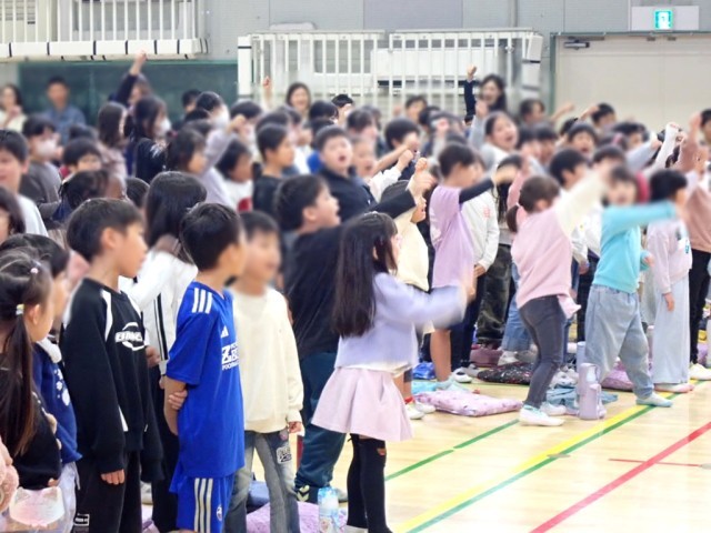 お礼に、こどもたちの応援を聞かせることができたのもよかったです。こどもたちが誇らしそうに、応援歌を歌ったり、カラーコールをしたりしていました。