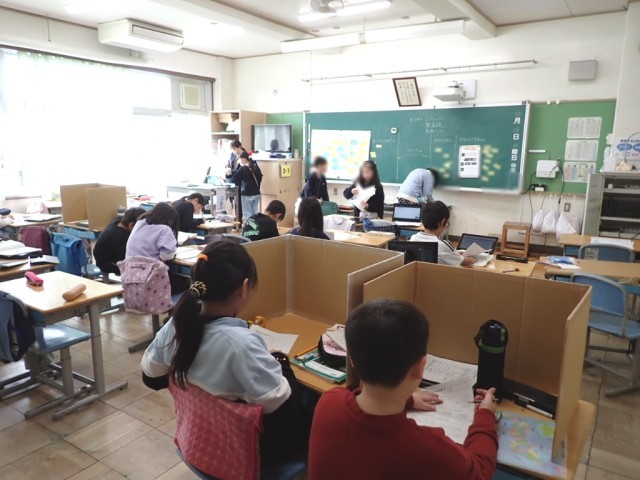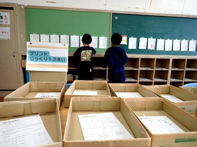 大きな数の学習ですが、自分にとって一番集中できる場所を選んで、頑張っていました。