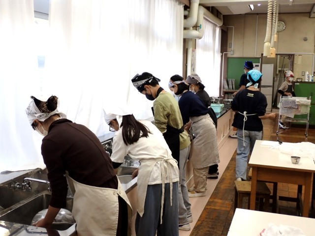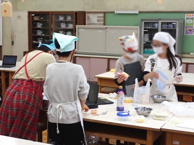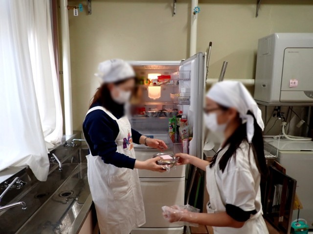 2校時、午後のピザ焼きに向けて、ピザ生地を準備しました。過発酵を防ぐために冷蔵庫で保管します。