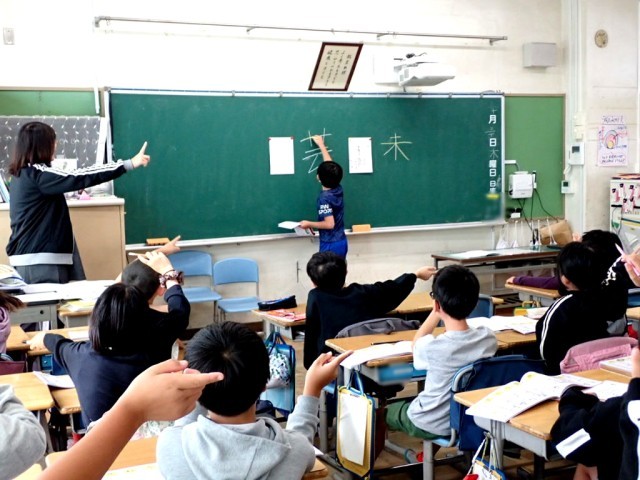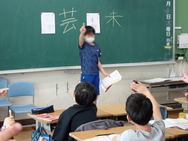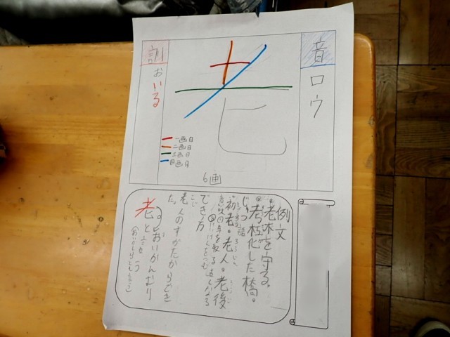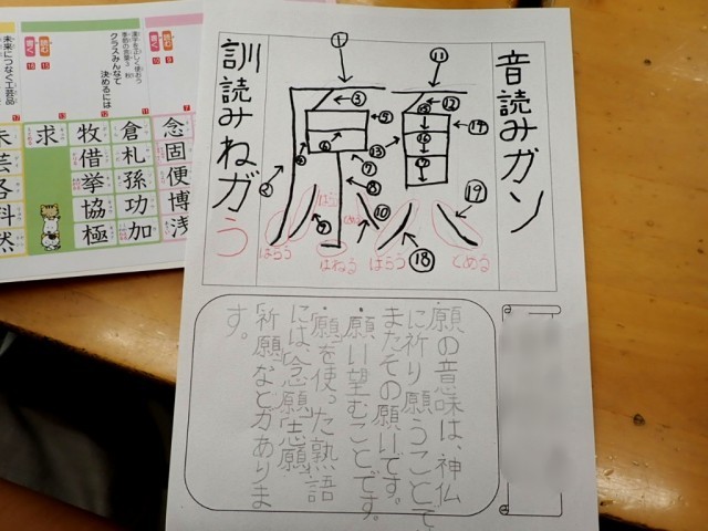 担当になった漢字をワークシートにまとめて、順番に前に出て、ポイントを解説しながらみんなに教えていました。