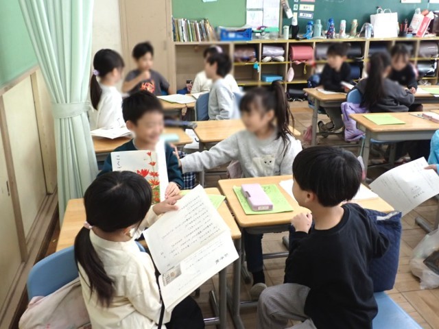 ワークシートを基に、友達と相談したり、みんなで発表し合ったりしていました。