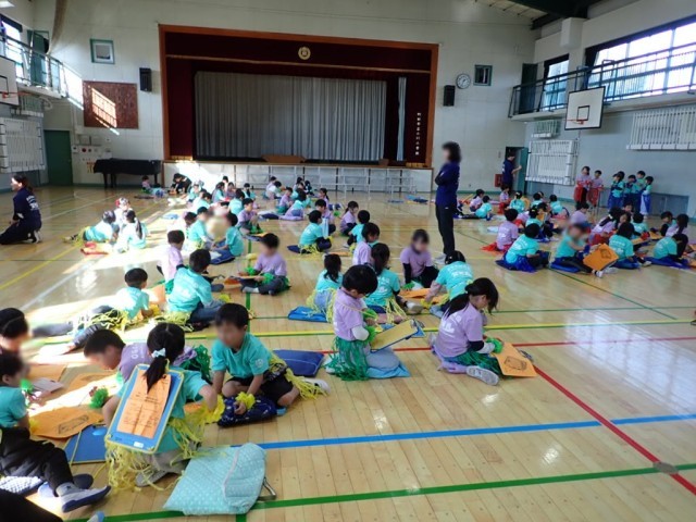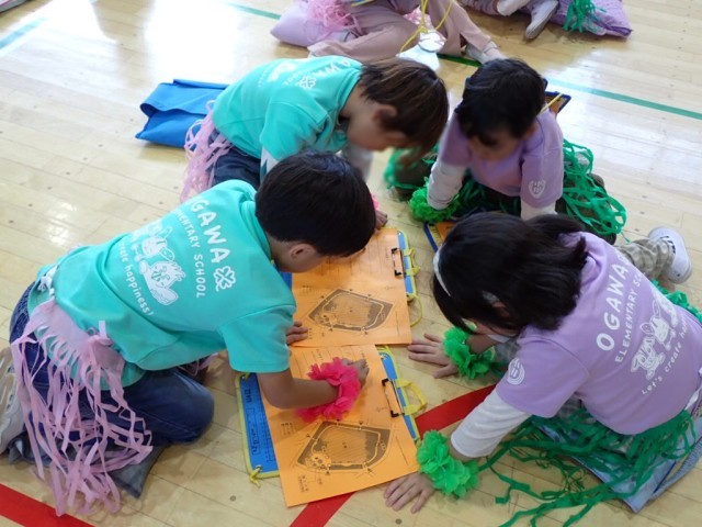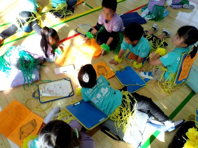 学校に戻ってから、体育館に改めて集合して、生活科見学の振り返りをしました。