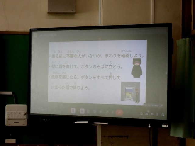 身を守るエレベーターの乗り方など、こどもたちの生活を取り巻く様々な場面について、安全指導を行いました。