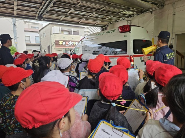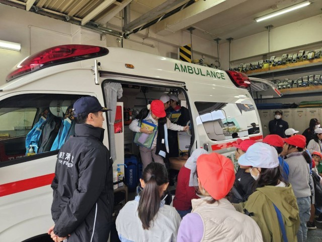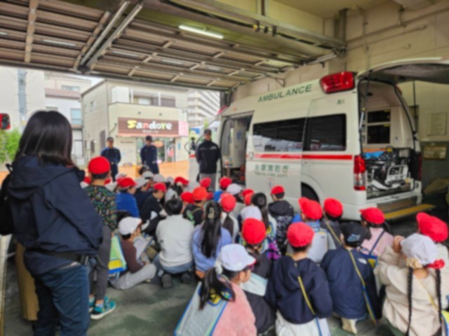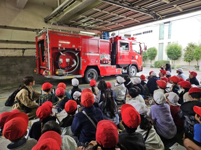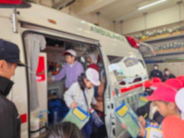今年度から消化器体験や煙体験などを行う予定でしたが、緊急の出動が入ってしまったため、全ての行程は行えませんでした。