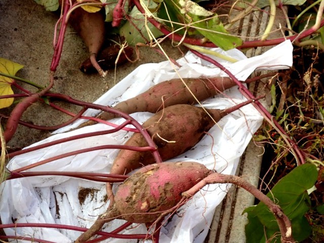 ピーマンやナスも、テラスの窯で焼いたら美味しそうです。サツマイモは後日、焼き芋にする予定です。
