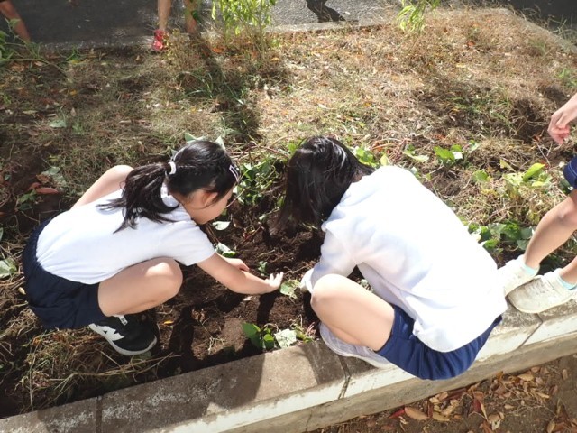 一方、2年生も、収穫祭に向けて、サツマイモを中心に収穫中でした。
