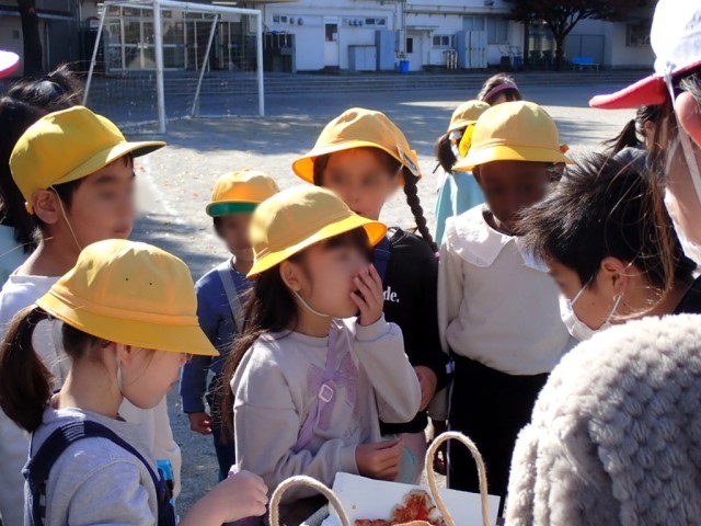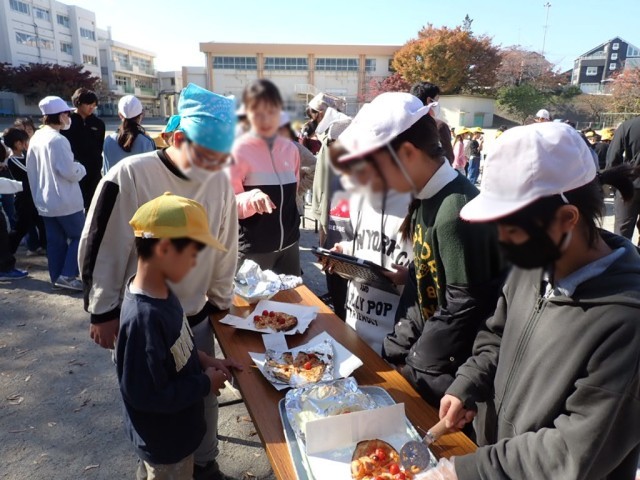 6年生からの、食べる時の注意事項の説明の後は、一人一人が思い思いに、どのピザを食べようかと動き回っていました。